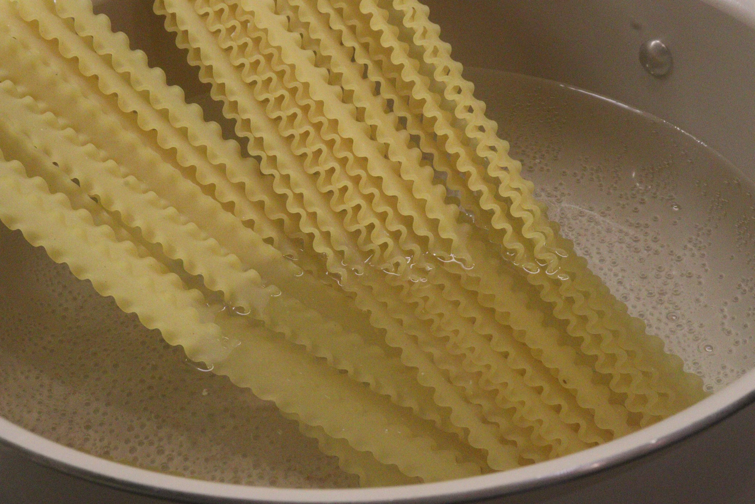 Cook the pasta – Bring a pot of water to a boil, add a pinch of sea salt, and cook the mafaldine until al dente. Reserve ½ cup of pasta water, then drain.
