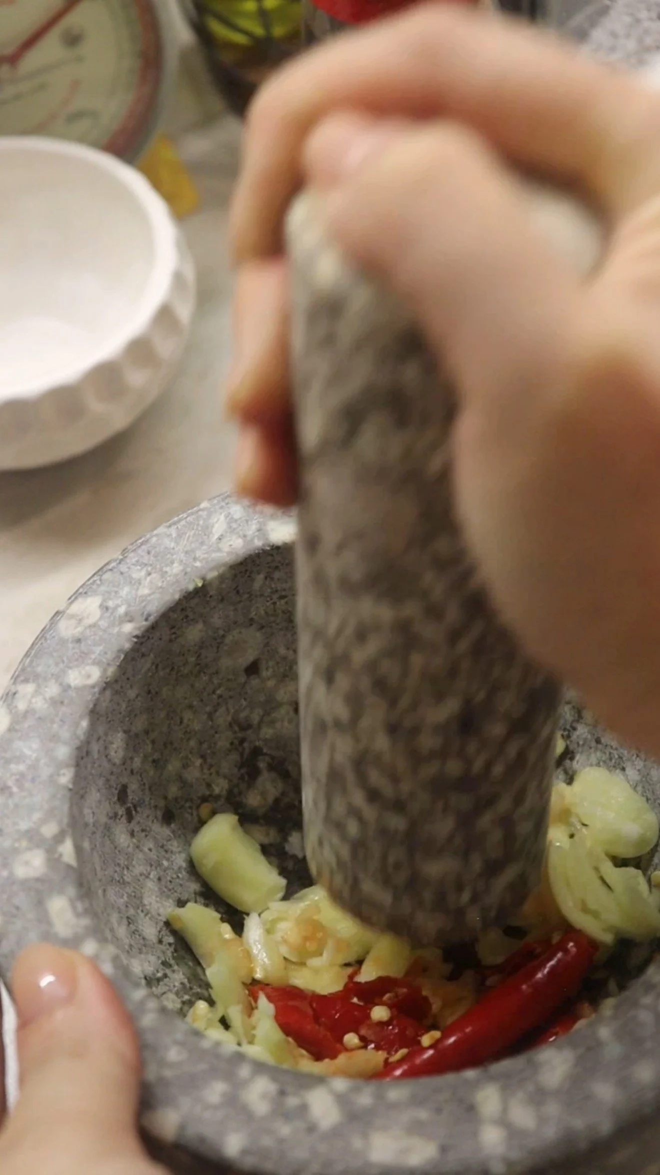Pound garlic & chili: For more flavor, use a mortar and pestle to roughly pound garlic and chili together. This helps release natural oils and makes the sauce more aromatic.
