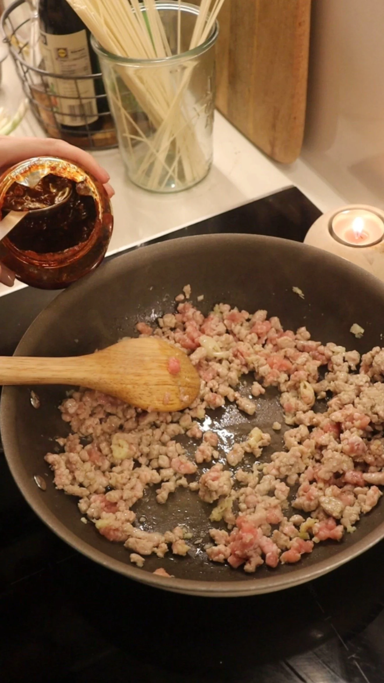 Today, I’m making this dish at home, adding a spicy twist with doubanjiang (fermented chili bean paste) for a deeper flavour, slightly spicy. The raw egg yolk might not be for everyone, but it adds texture to the dish. Plus, when mixed into the hot noodles and pork, it gently cooks, creating a silky, rich sauce that coats every strand perfectly